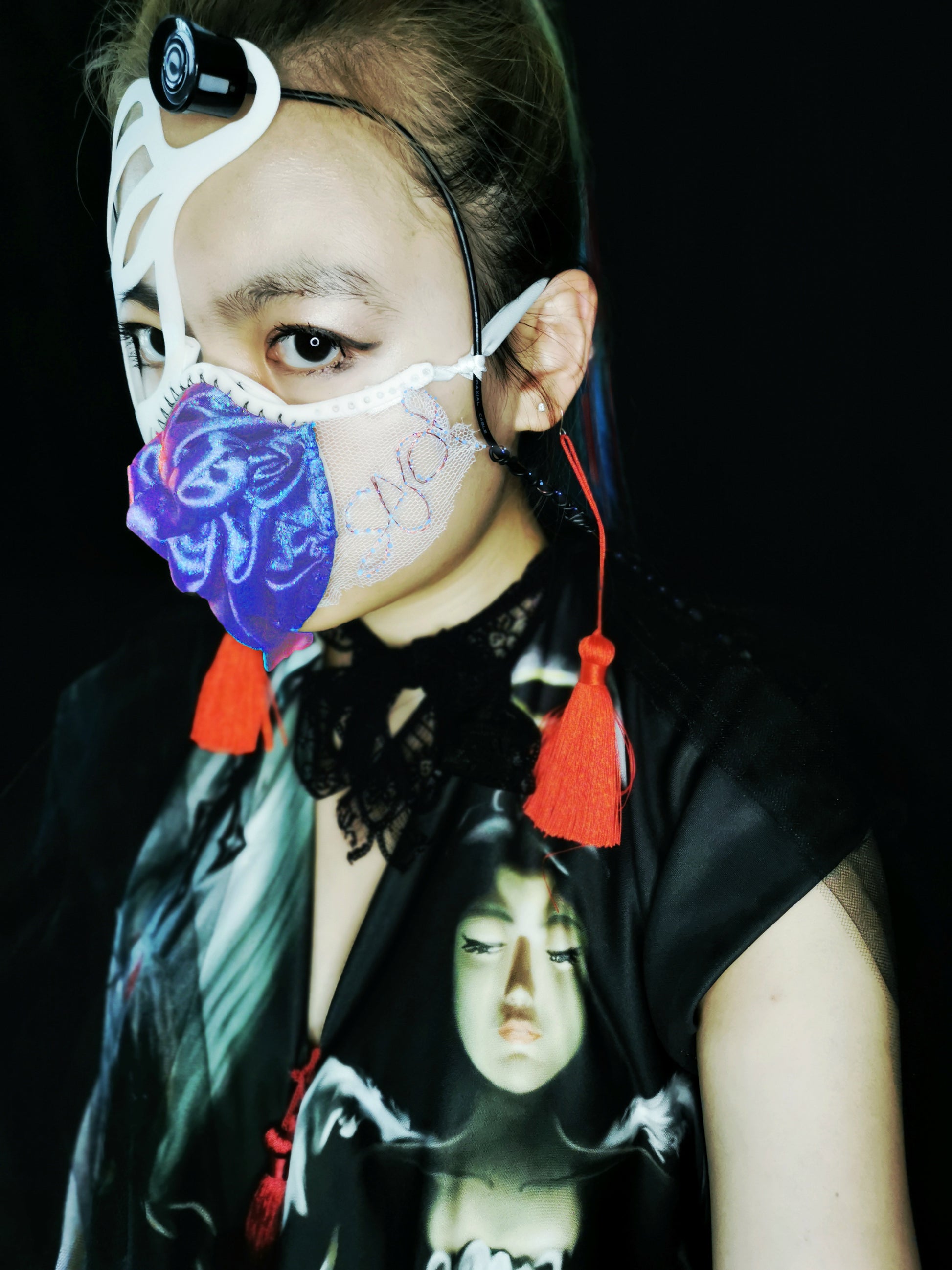 Distance sensing, warning-sending, anti-virus conductive fabric, fashion design, 3D printing all in one mask.