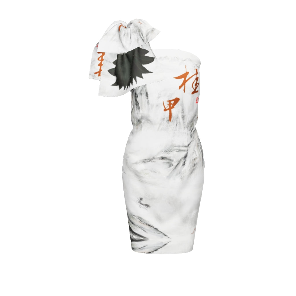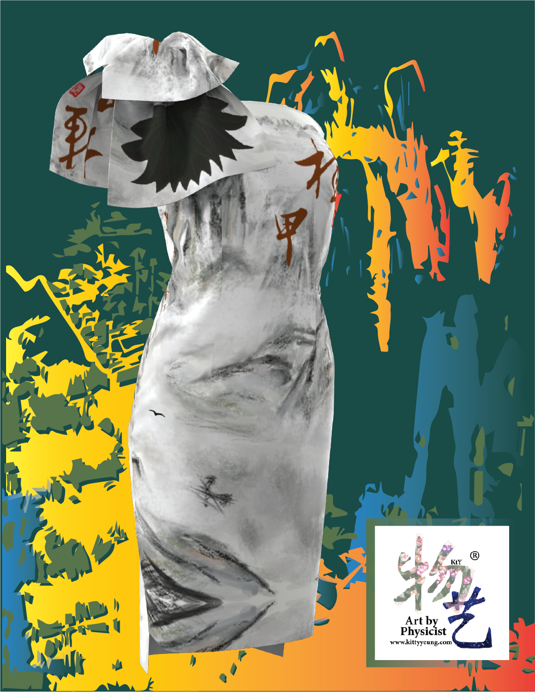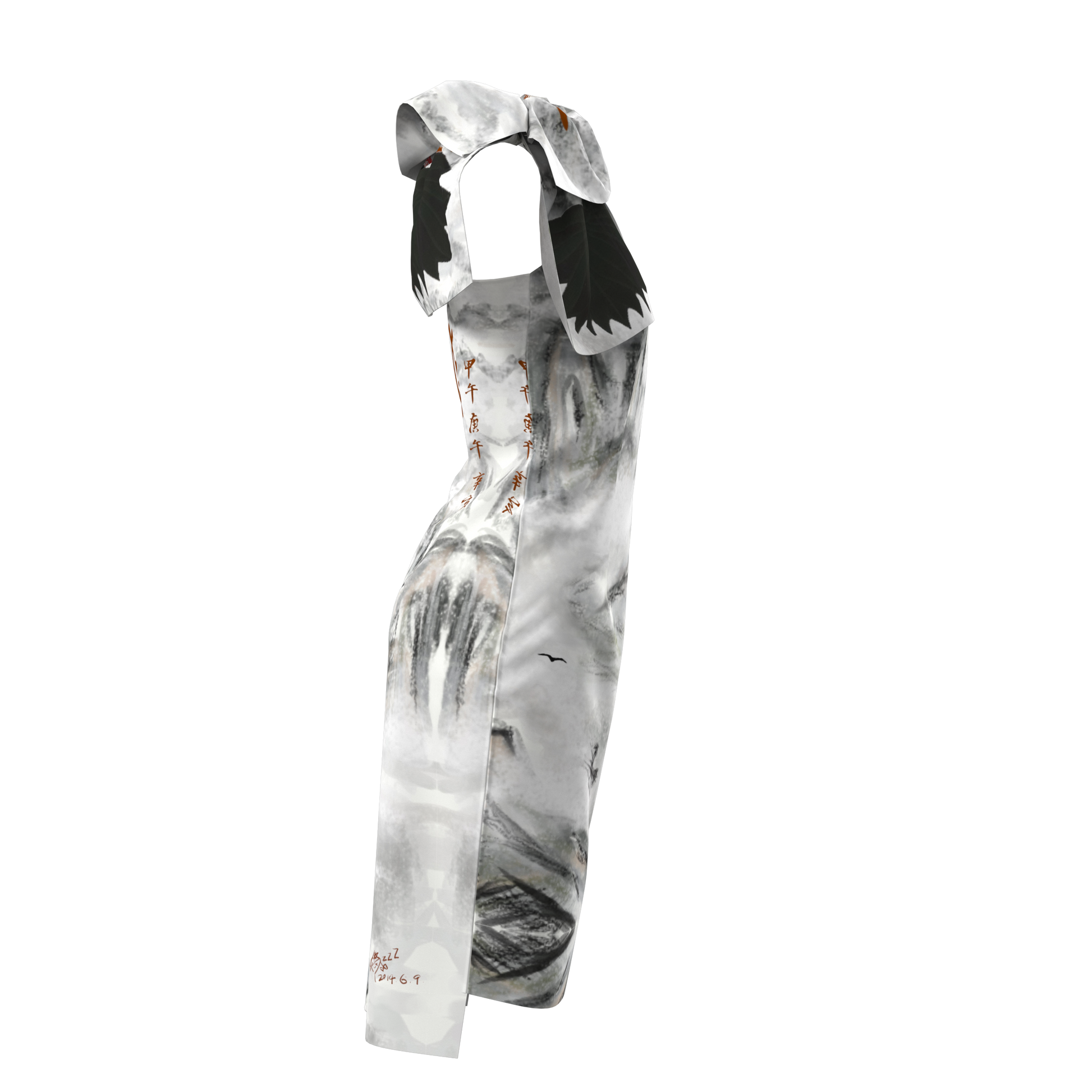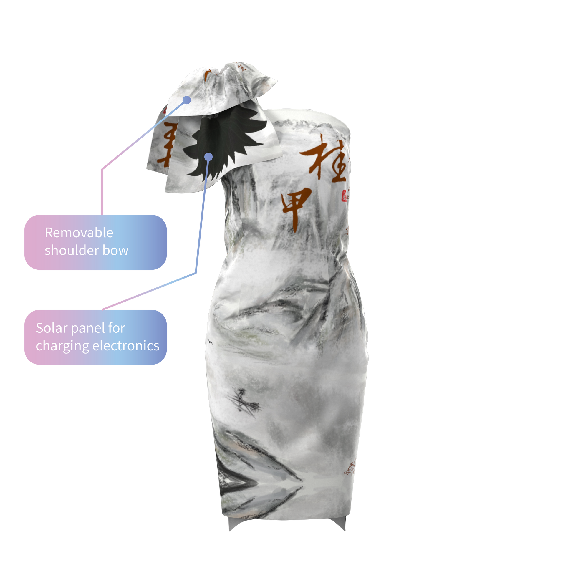 Power your electronics with the attachable bow on this beautiful dress, featuring a brush-and-ink-style painting of the scenic Li River in Guilin - one of the most beautiful places on the planet. A boat across the Li river through the mountains brings you into a painting. Designer KtY captured the picturesque nature with her paint brushes when she visited.